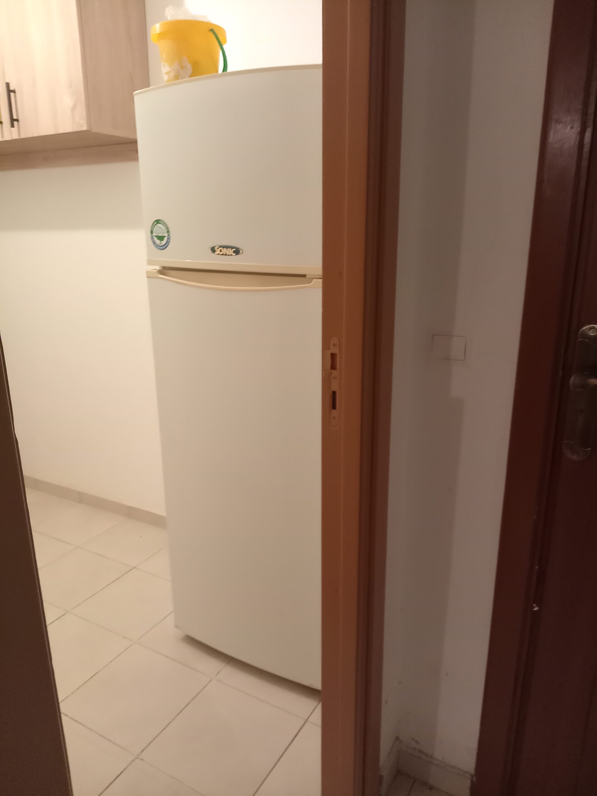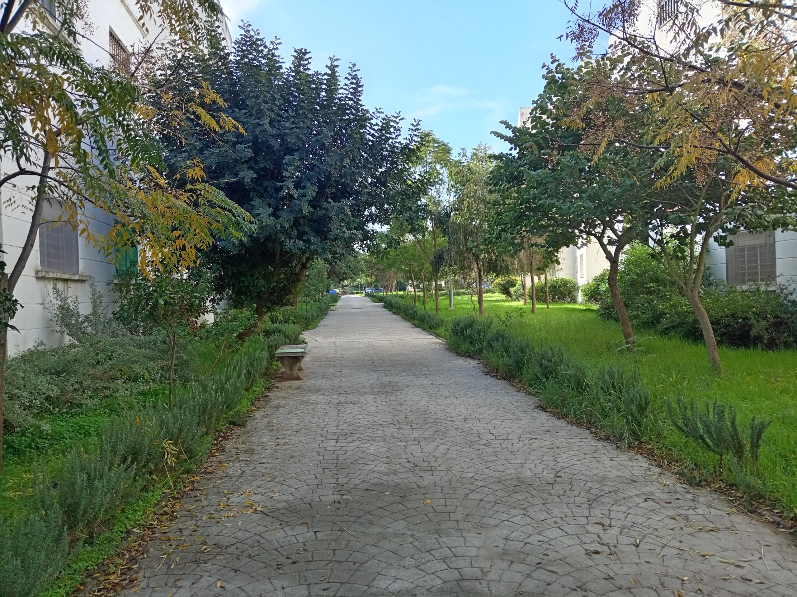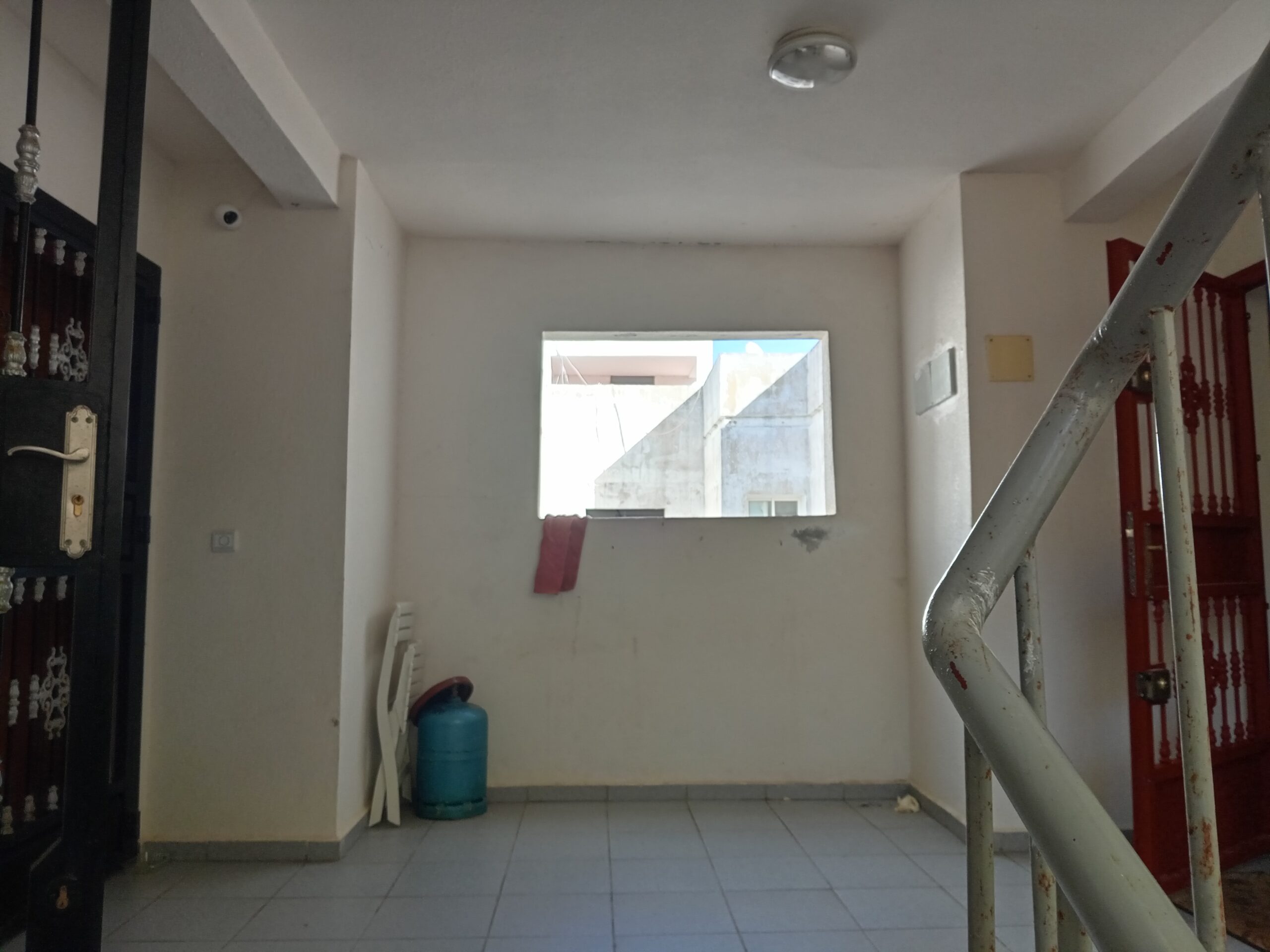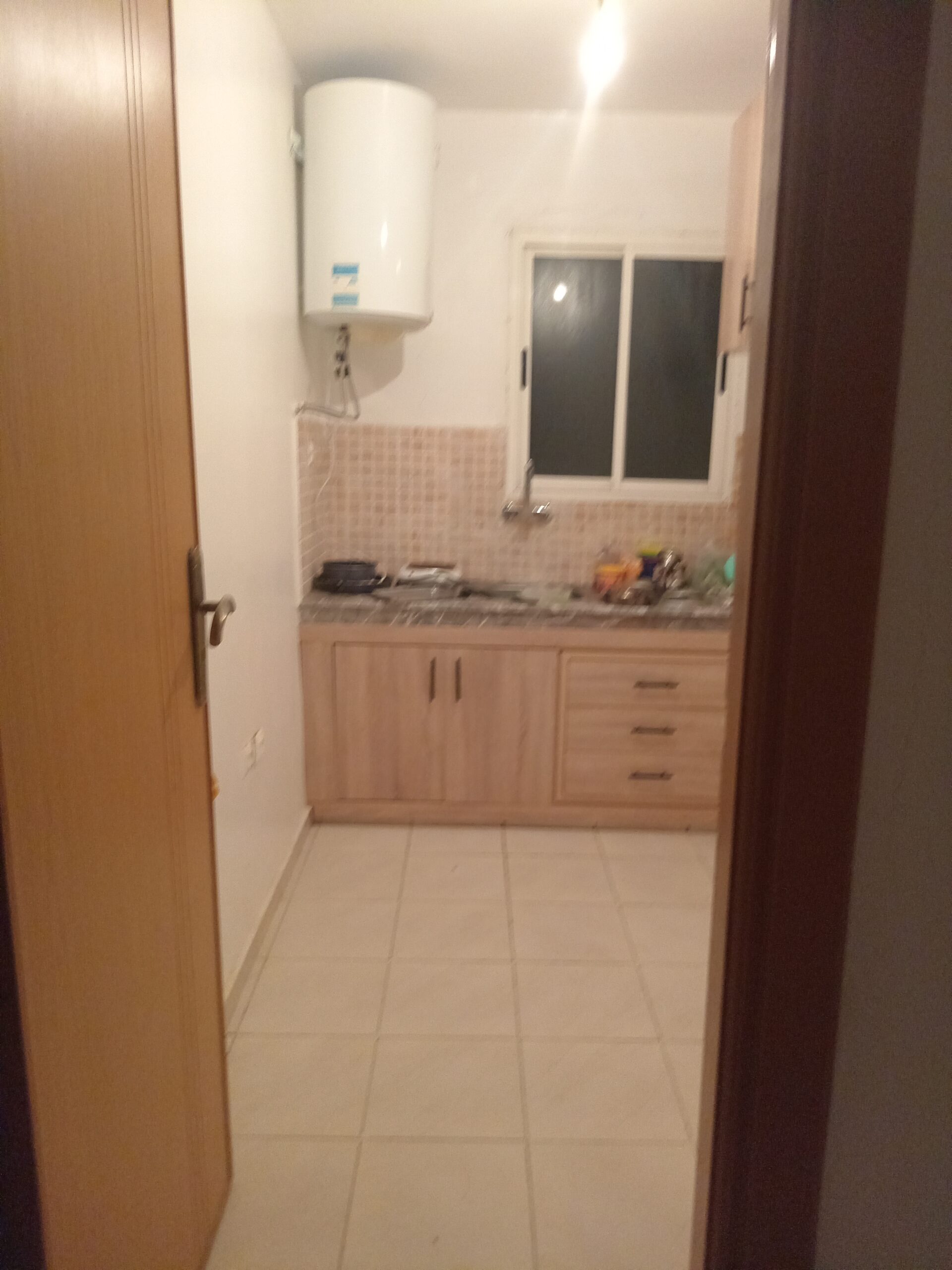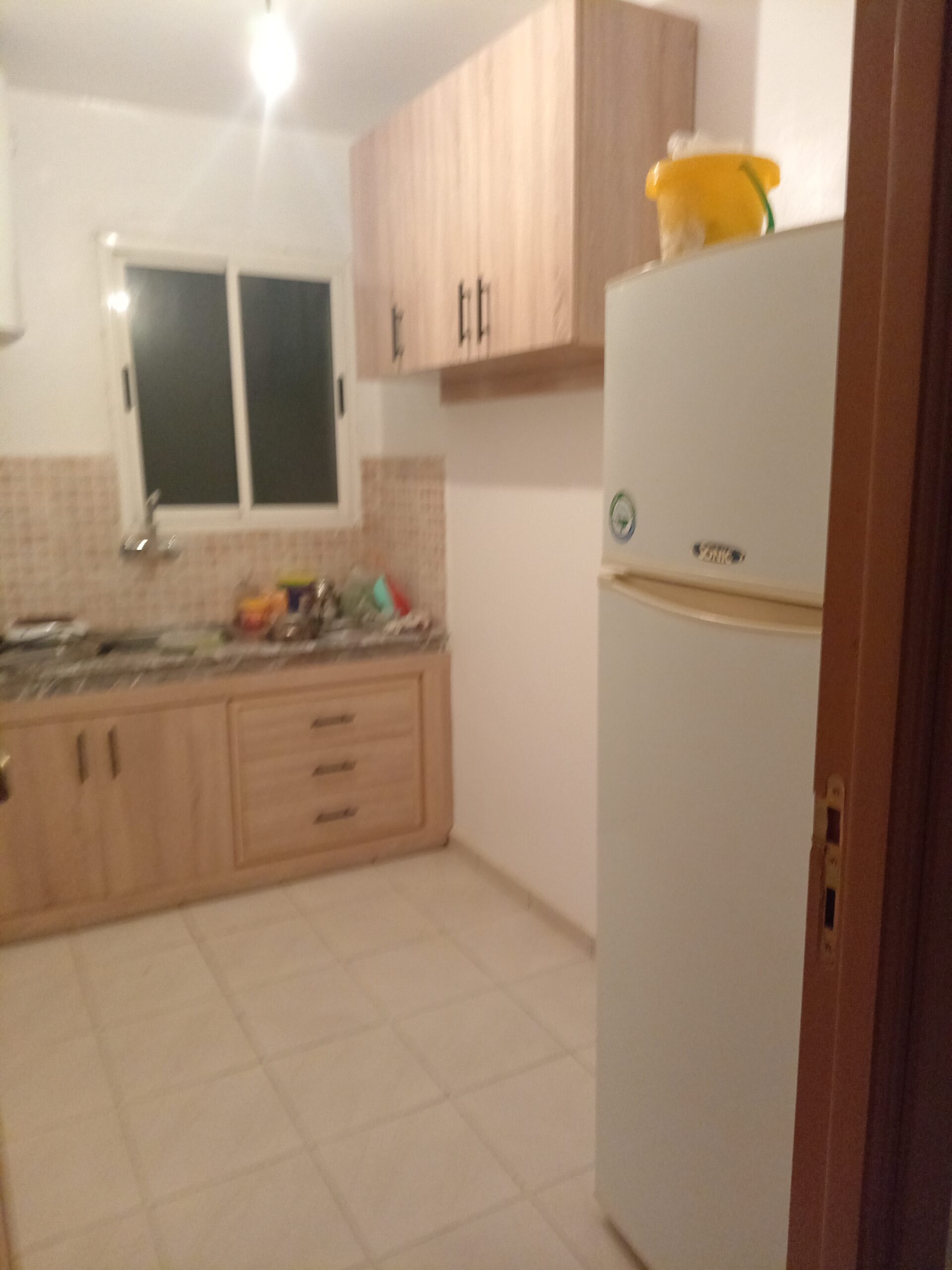 Un appartement à Riad Tanger de 50 m2 : un salon, 2 chambre, une salle de bain et une cuisine. Proche du : CHU Mohammed VI de Tanger, Forêt Diplomatique, Autoroute de Rabat, …